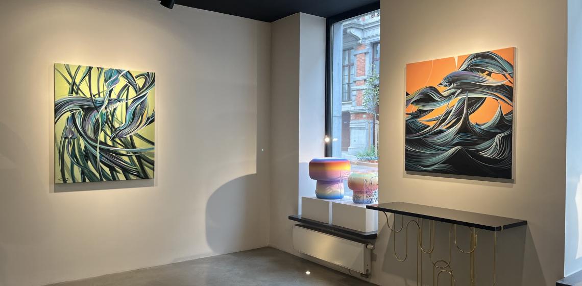 Intitulée La danse des éléments, cette exposition dévoile un ensemble de toiles inédites où se mêlent animaux, eau et terre dans un tourbillon de formes et de mouvements.
